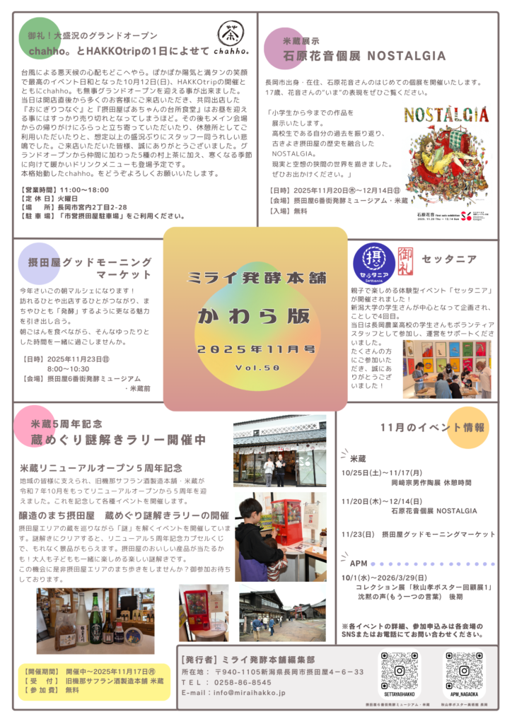摂田屋6番街発酵ミュージアム・米蔵や秋山孝ポスター美術館 長岡でのこれからのイベントや 思い出を残したかわら版を作成しました!